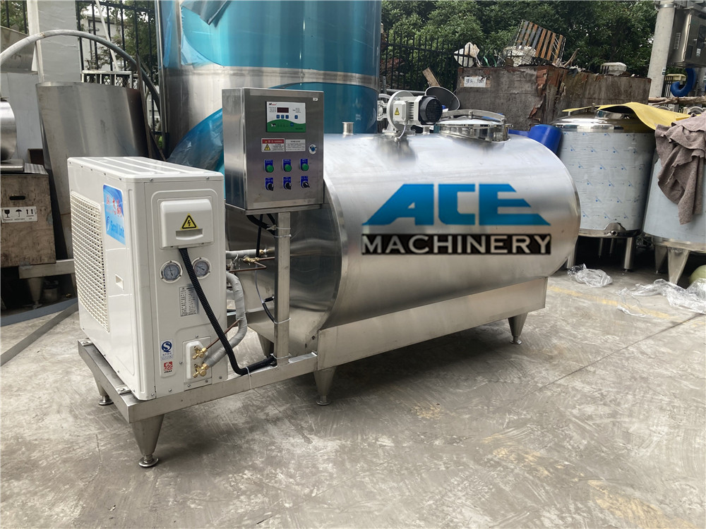 Este tanque de enfriamiento de leche a granel de 1000 litros se utiliza para el almacenamiento y el enfriamiento del jugo fresco de los pastos y la granja, también se puede utilizar para la pequeña estación de recolección de leche, plantas de procesamiento de productos lácteos, y alimentos, piensos, fábricas farmacéuticas.